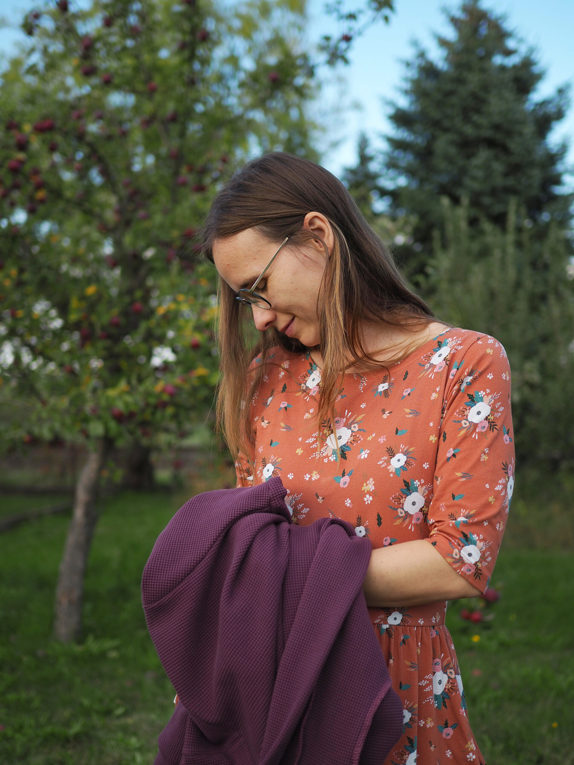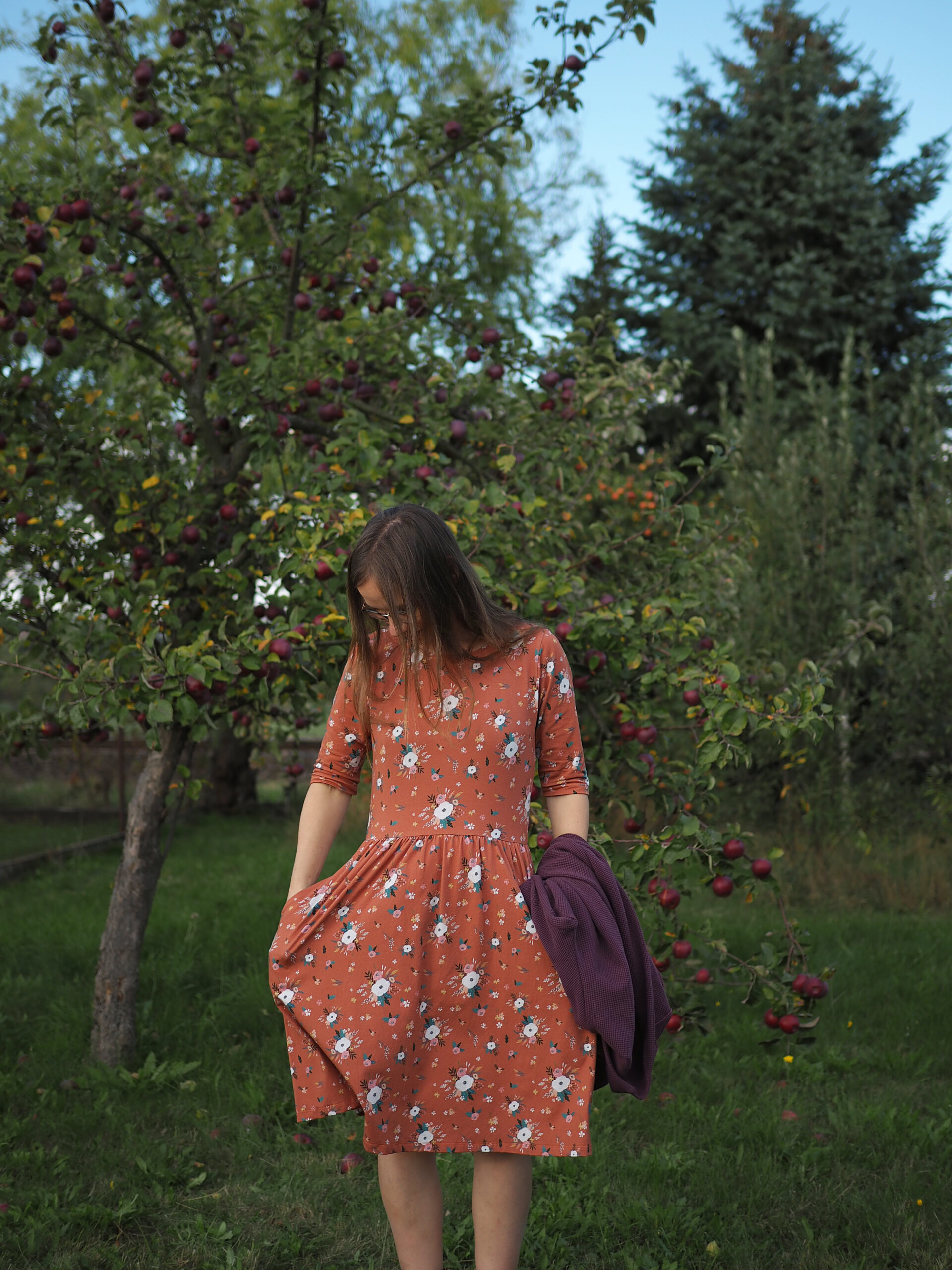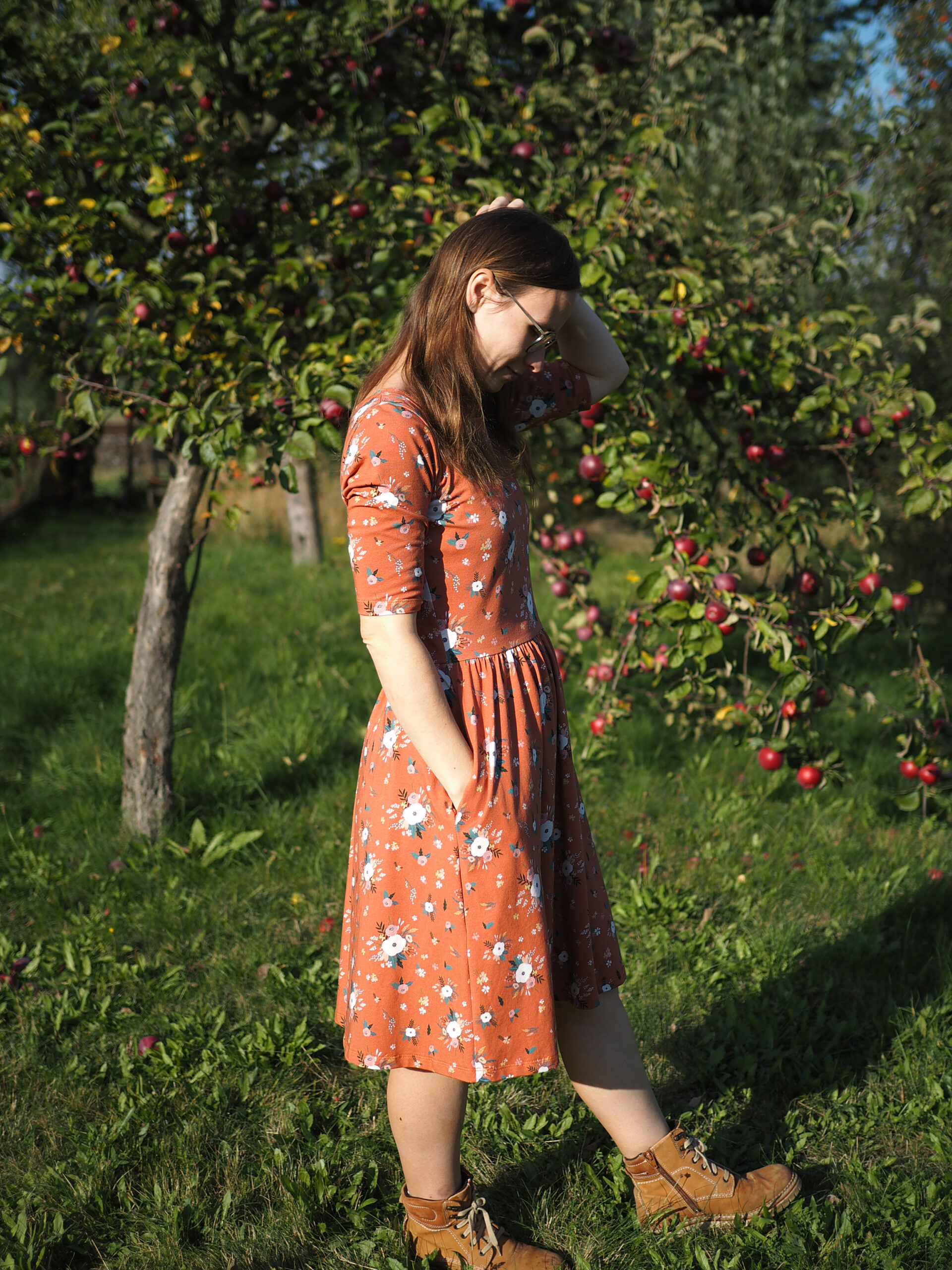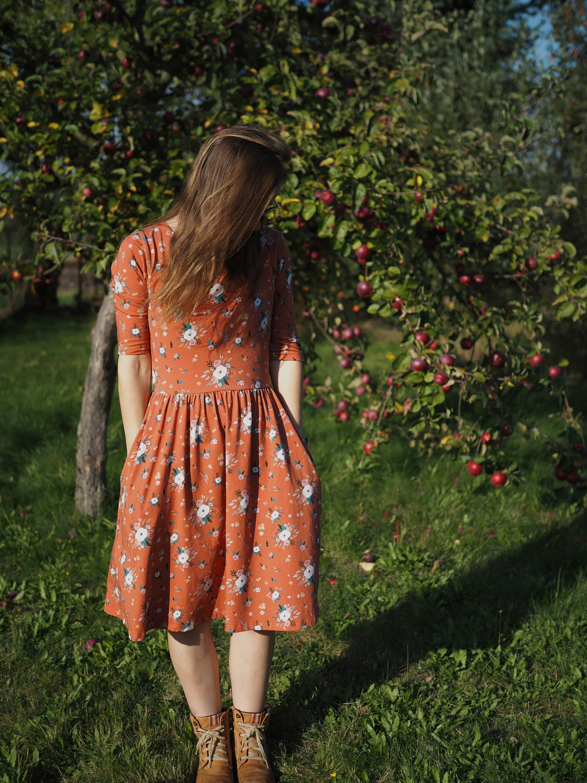 Látky vybírám měkké a pružné, aby Vám v šatech bylo dobře i po dopoledni na jahodách, obědě u babičky a večeři u ohně.