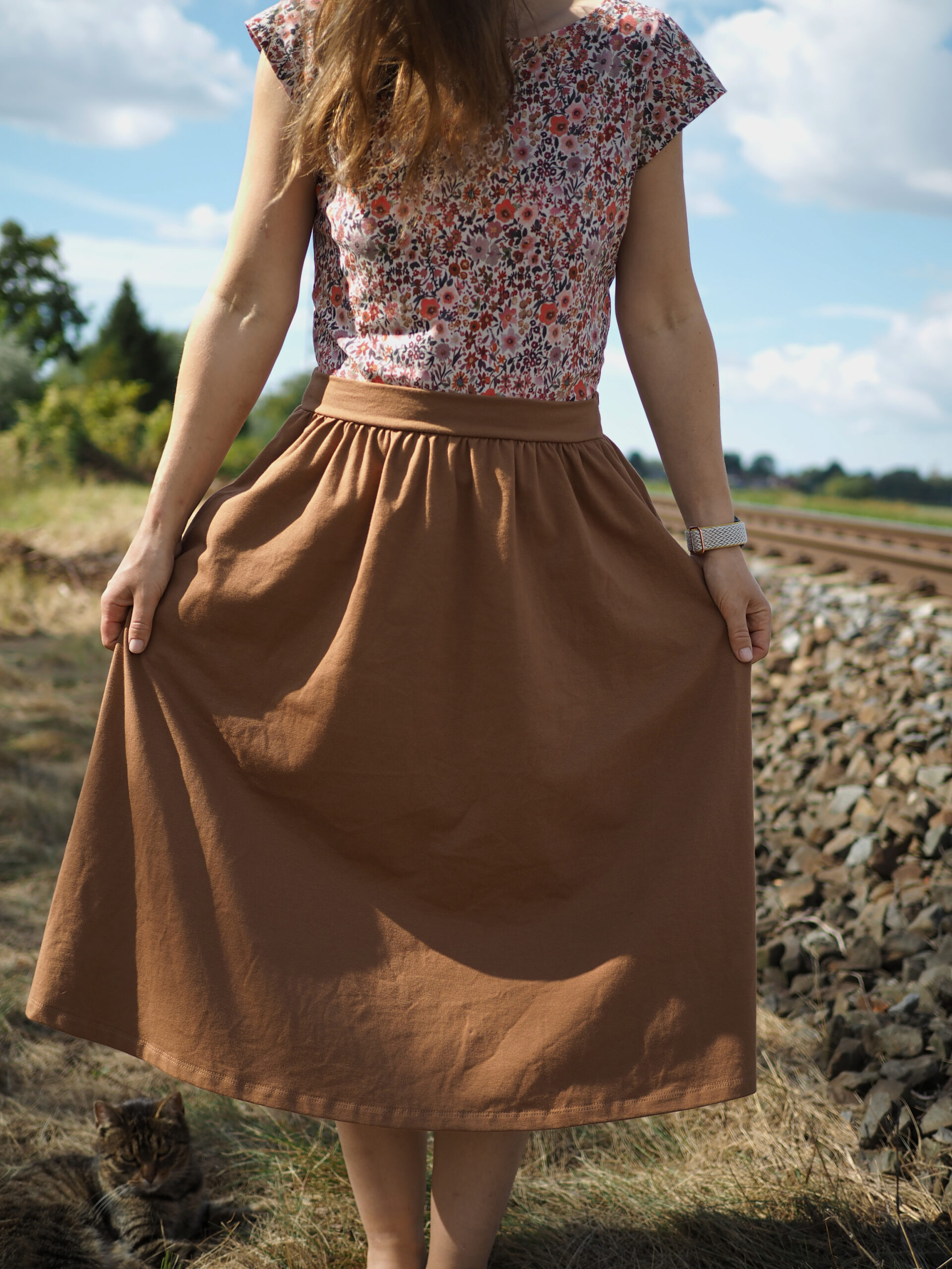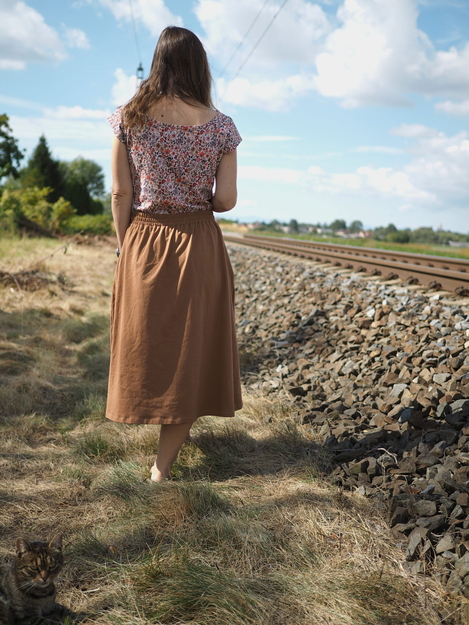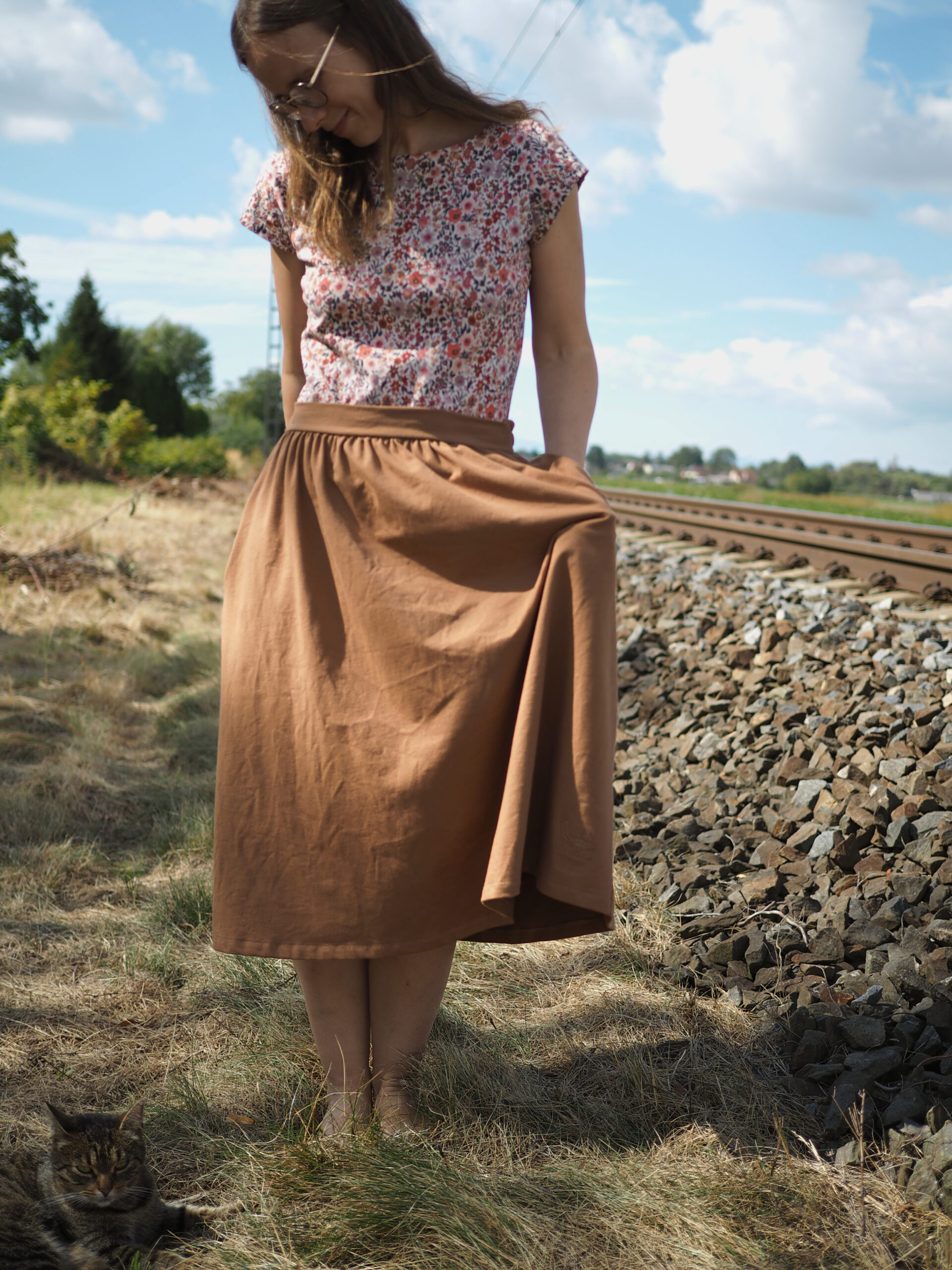 Ráda Vám ušiji tuto sukni, která díky řasení umožňuje běžet za dětmi utíkajícími na odrážedle, je dostatečně dlouhá na to, abyste mohly v klidu tvořit bábovičky na písku. Pas se zepředu hladký, vzadu je guma, díky které Vás nebude nikde tlačit. A do kapes dětem poschováváte všechny ty veledůležité poklady od kamínků po autíčka.