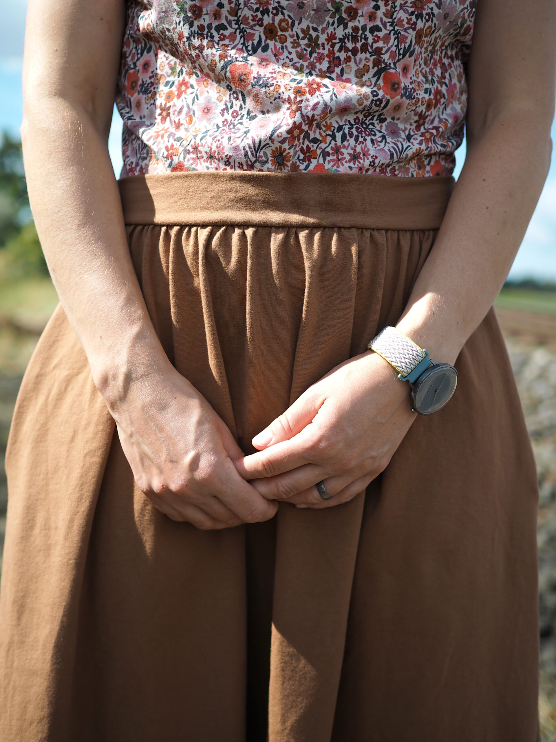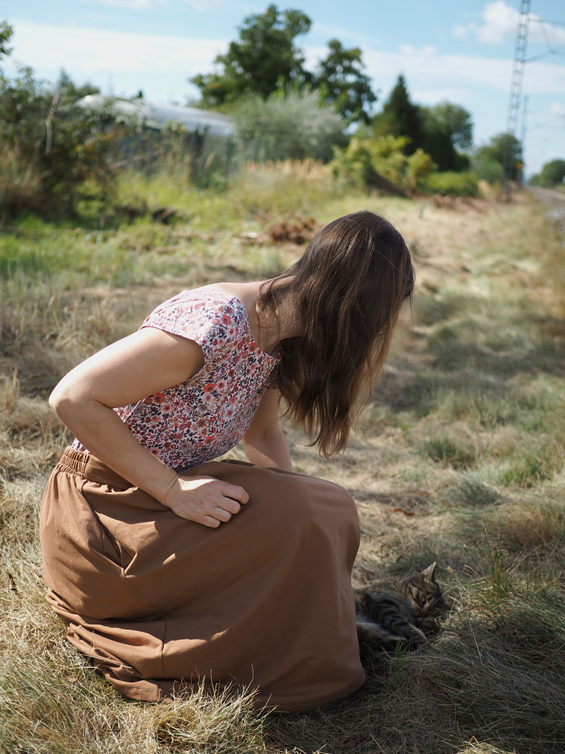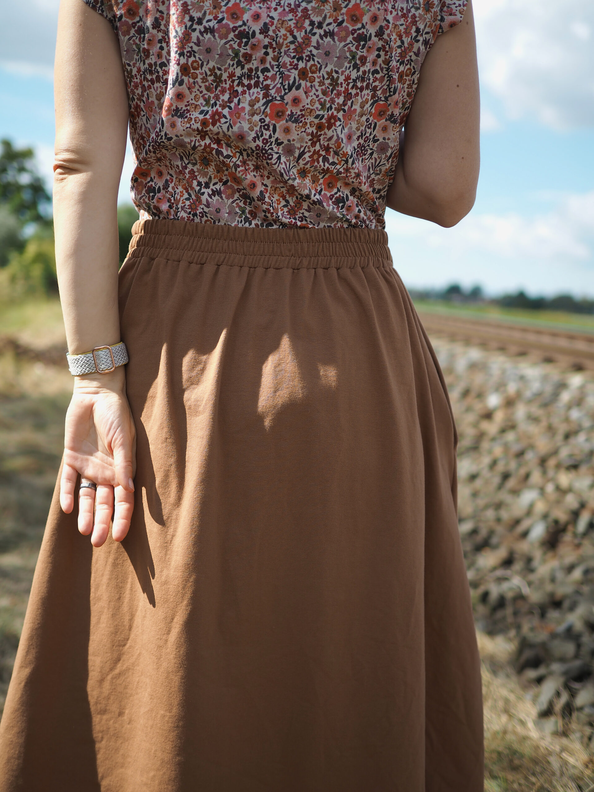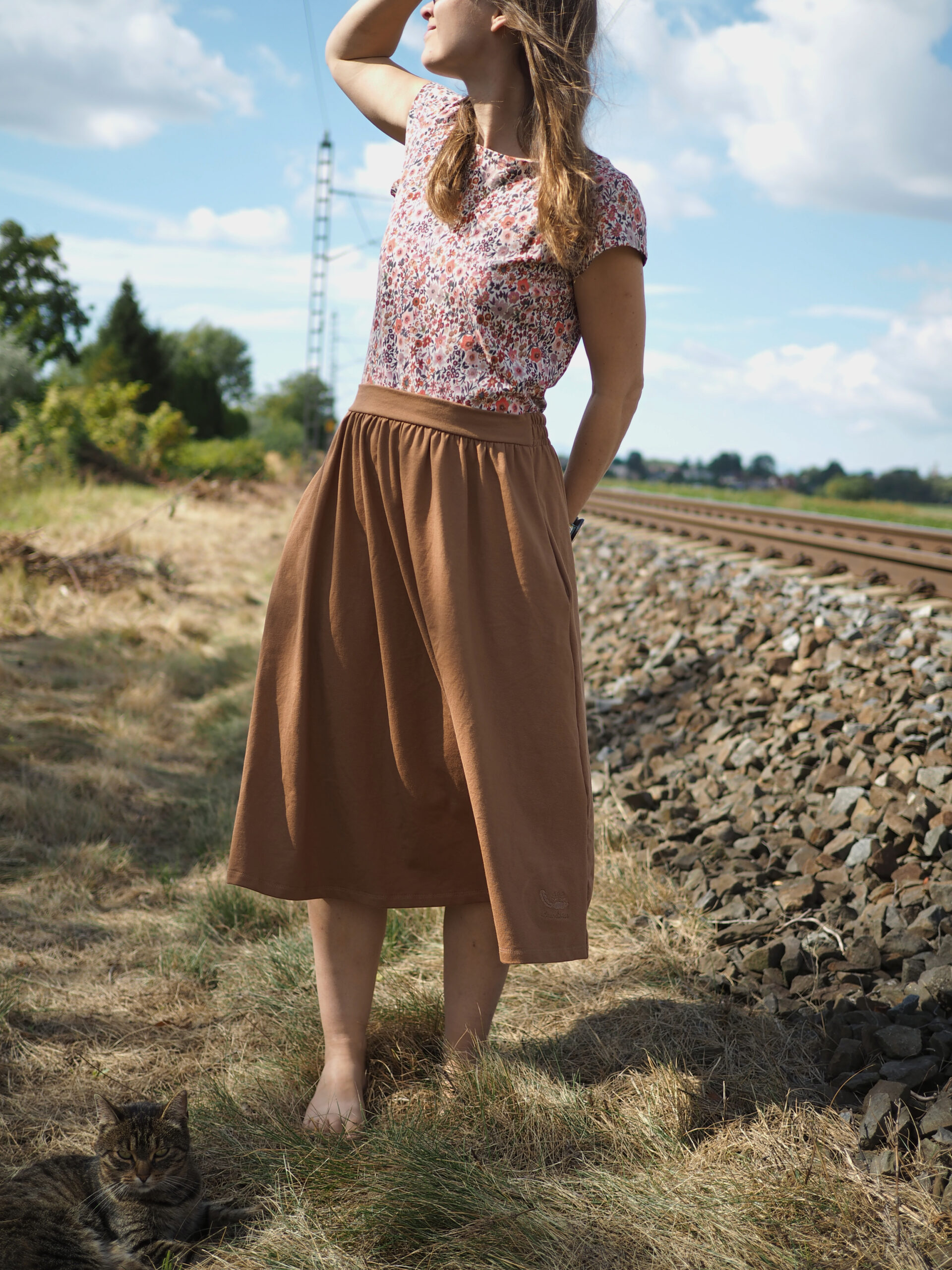 Ráda Vám ušiji tuto sukni, která díky řasení umožňuje běžet za dětmi utíkajícími na odrážedle, je dostatečně dlouhá na to, abyste mohly v klidu tvořit bábovičky na písku. Pas se zepředu hladký, vzadu je guma, díky které Vás nebude nikde tlačit. A do kapes dětem poschováváte všechny ty veledůležité poklady od kamínků po autíčka.